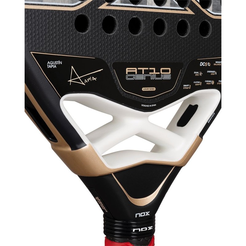 La nueva AT10 Genius 18K Alum para la temporada 2026 eleva el listón de la innovación, evolucionando la pala con la que Agustín Tapia alcanzó la cima del pádel mundial con un nuevo molde. Este año el violín del Mozart de Catamarca incorpora el revolucionario sistema de contrapesos Weight Balance, que permite ajustar el balance de la pala a tu estilo de juego, ofreciendo una experiencia 100% personalizable.
